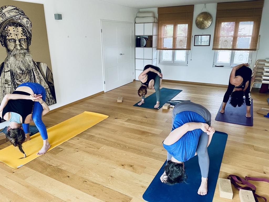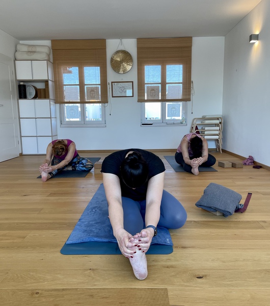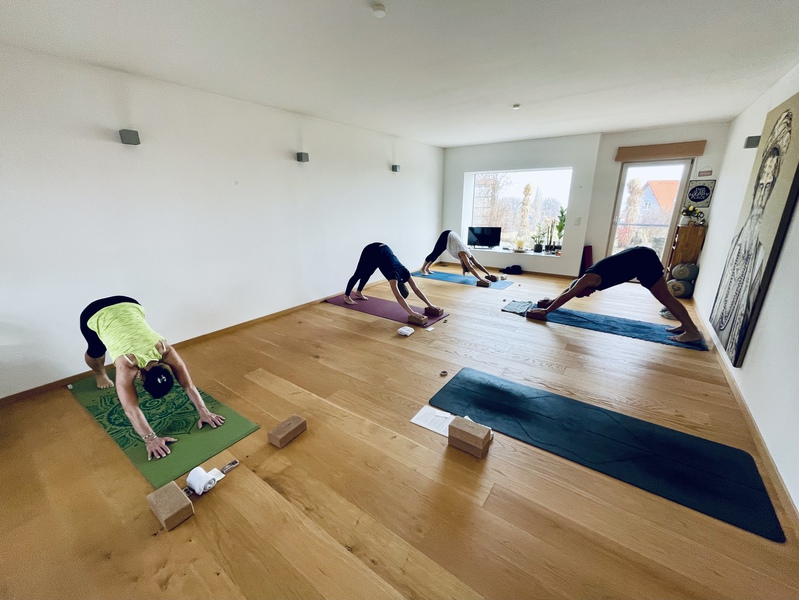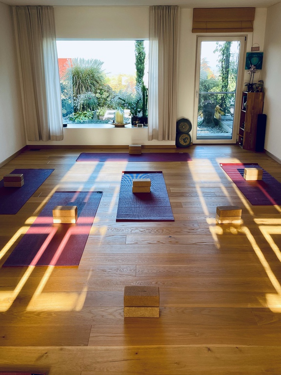 Das kleine, gemütliche Studio ist mit ausreichend Yogaequipment ausgestattet und bietet Platz für max. 10 Personen.